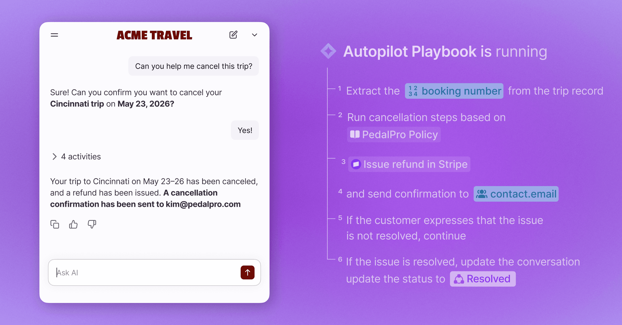Autopilot Resolve lets customers complete requests from start to finish right in your app or website