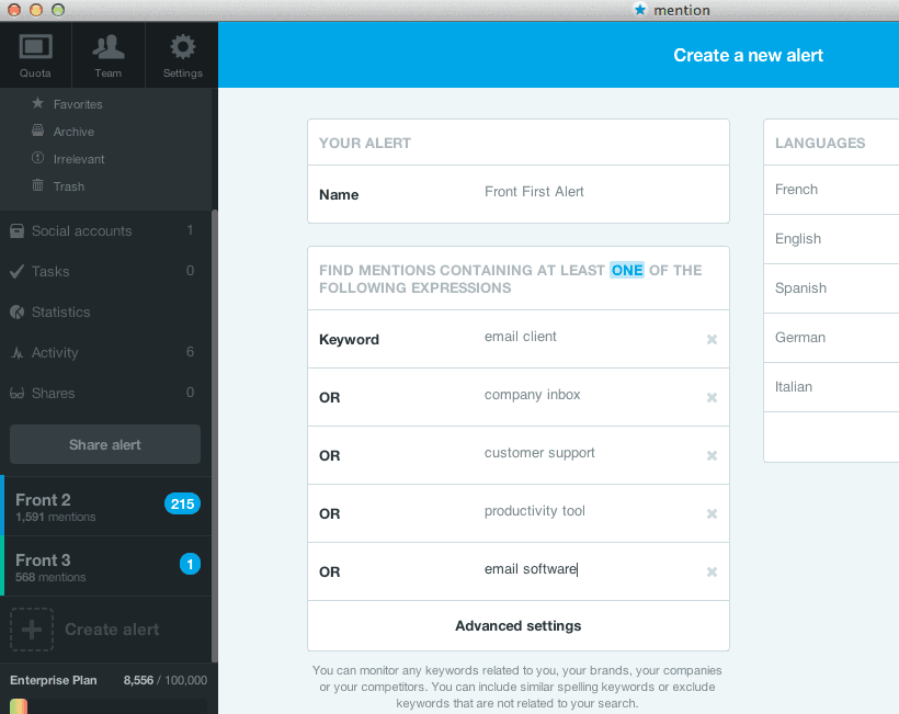 Once you’ve done that, just create your alert and let mention’s magic happen.