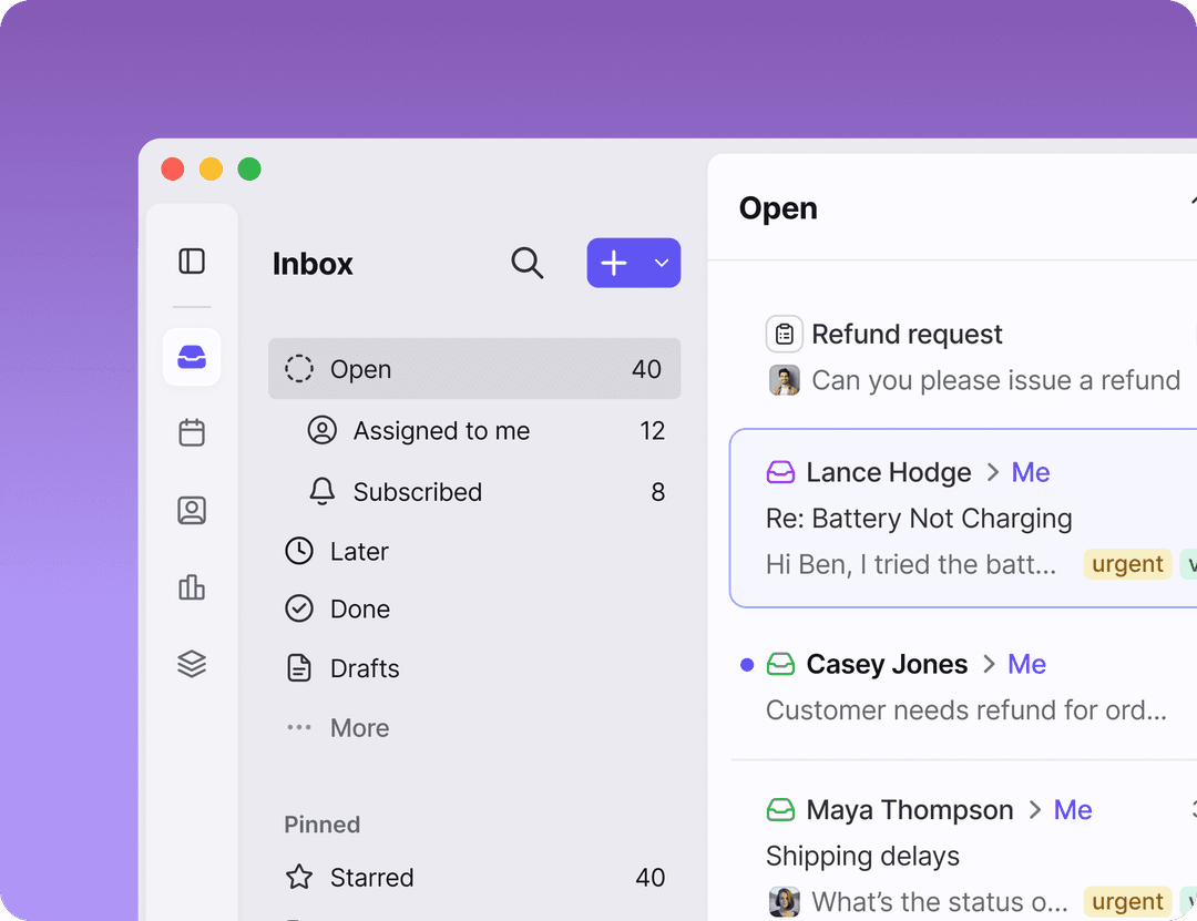 We redesigned the Front inbox from the ground up, and yes, it’s as satisfying as it sounds. New Open, Later, and Done sections keep your individual workspace organized so you always know what actually needs your attention right now. And that’s just the start of what’s new.