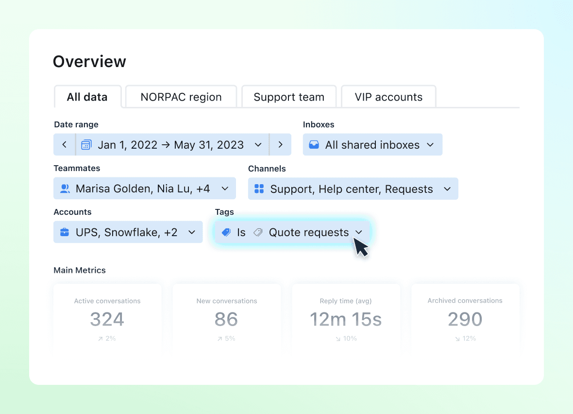 Make strategic decisions when you export Front data and combine it with other sources to gain a full understanding of your customer experience.