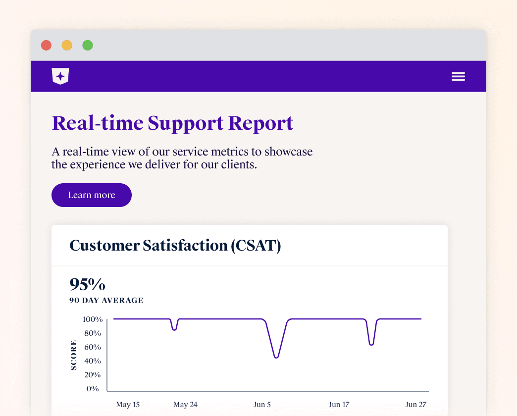 Share real-time metrics like response time or CSAT in a custom page on your knowledge base. Show customers the exceptional experience they’ll receive to build trust, drive growth, and stand out from the competition.