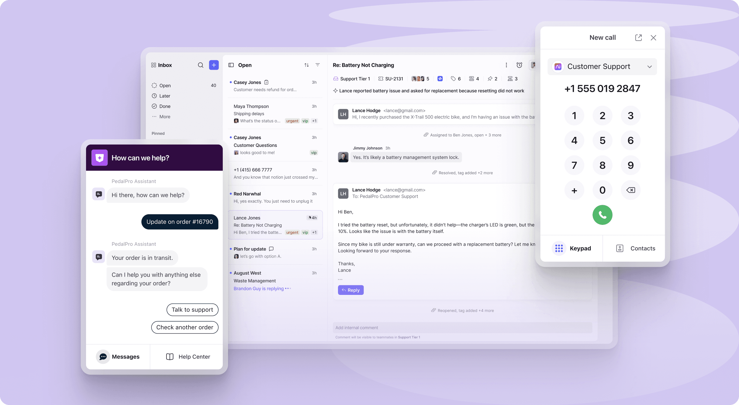 Delight customers with lightning-fast resolutions on every channel. Manage email, voice, chat and more — all in one modern, AI-powered platform.
