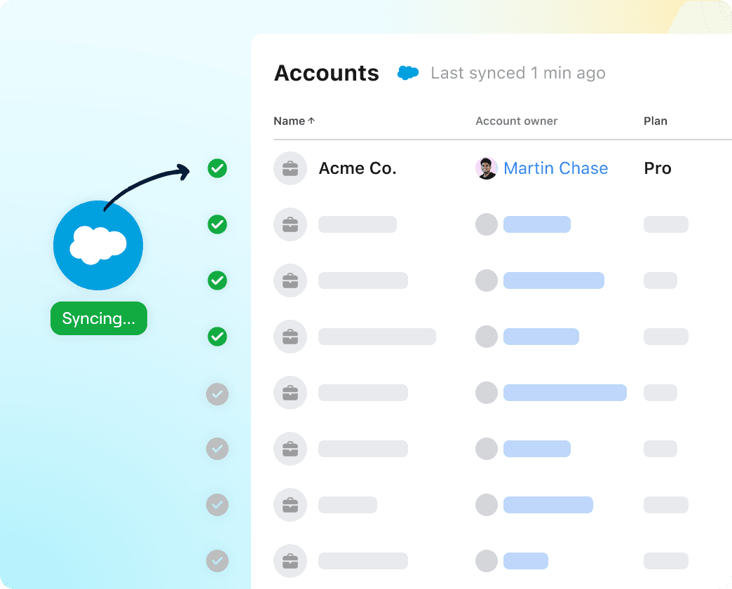 Use data synced from other systems in your workflows, like account data from your CRM or customer order status.