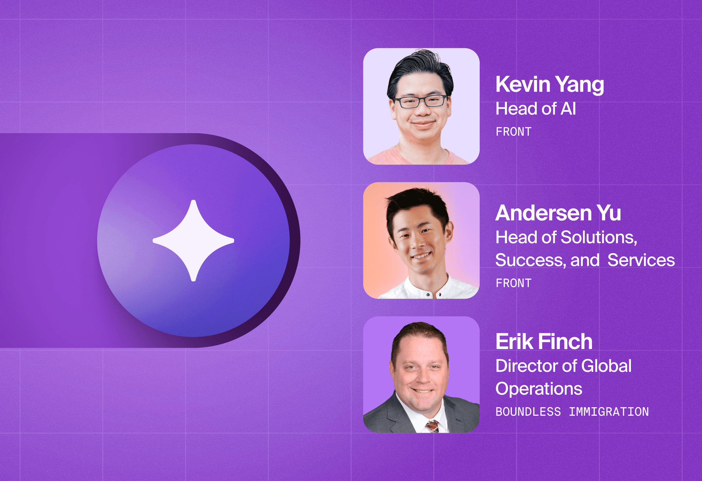 Plus, we’ll hear directly from Front customer, Erik Finch, Director of Operations at Boundless Immigration, about his game-changing AI workflows in action.